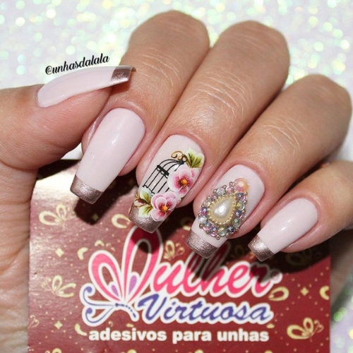 Una vez que hayas pegado y terminado la decoración, aplica otra capa base en la parte superior para que tengas un hermoso acabado, sin que el plástico adhesivo quede visible. Tras esto, ya estarán listas tus uñas.