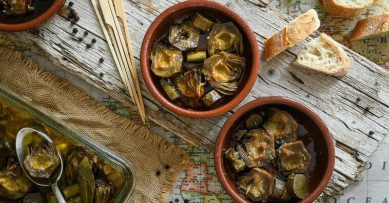 Receta de las alcachofas confitadas hechas en la olla de cocción lenta
