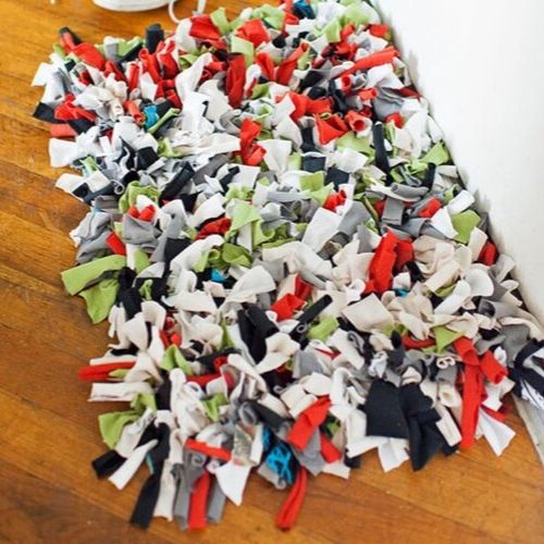 Quién sabe hacer ganchillo, puede aplicar los puntos usando distintos materiales, como retales de tela. Las puntadas se pueden hacer a mano incluso para una alfombra de mayor tamaño y piezas más anchas. Queda precioso y encima personalizado.