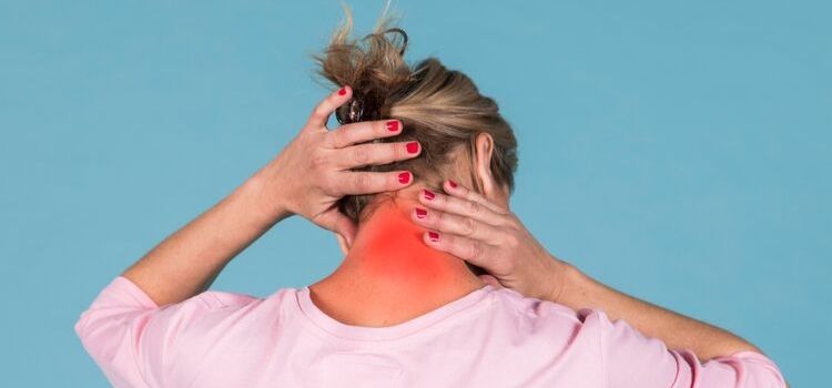 5. Después de masajear cada lado, sostén ambas manos en la parte posterior de tu cuello y usa las yemas de los dedos para masajear toda la parte posterior de tu cuello como si estuvieras escribiendo, pero con movimientos más lentos. Continúa hasta los hombros.