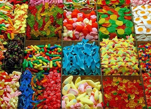 En el mercado se ofrece de forma muy común, dentro de los componentes de las golosinas, jarabe de fructosa. Esta sustancia contiene glucosa y fructosa de forma no ligada, por lo que su proceso de absorción es mucho más rápido. El jarabe de fructosa se dirige directamente al hígado y es allí donde se convierte de inmediato en grasa.