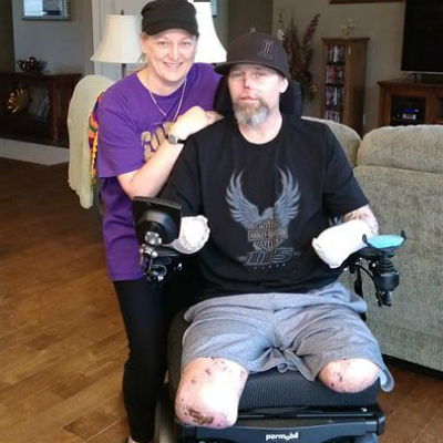 Por ello, el beso de un perro casi lo mata, pero ahora está bien. Por causa de lo ocurrido, debe moverse con una silla de ruedas eléctrica y hacer terapia para volver a aprender a hacer tareas simples como comer y cepillarse los dientes. Él dice que su mayor objetivo es conducir de nuevo un día y tiene la intención de comprarse prótesis para sus brazos y piernas.