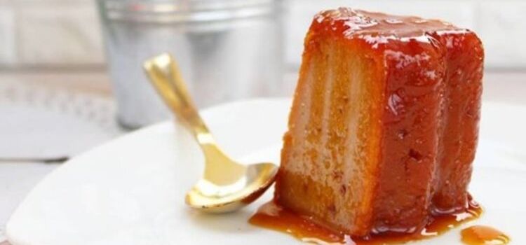7. Antes de servir, desmolda en un plato que sustente el almíbar y el pudín.
