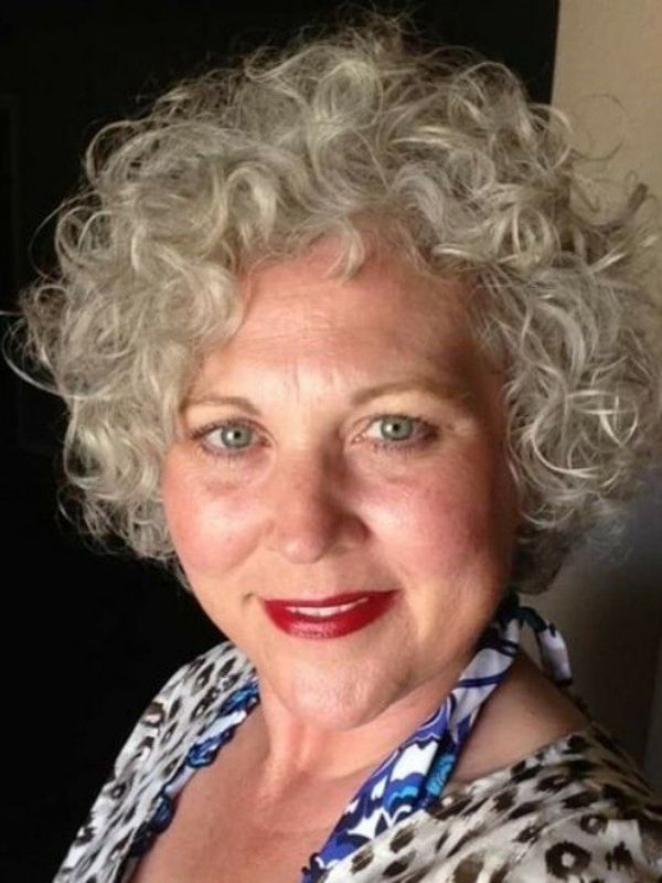 11. Rizos cortitos y grisáceos que armonizan con un look lleno de color y estilo