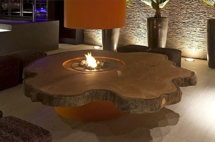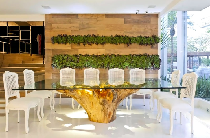 La copa del árbol es tu mesa del comedor con una tapa de cristal para realzar el tronco