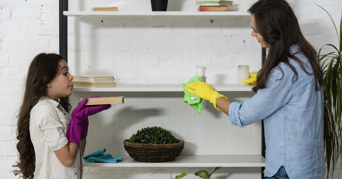La habitación ya debería estar menos desorganizada, pero vuelve para asegurarte. Cada uno en su habitación, devolviendo todo lo que está desordenado al lugar y removiendo el polvo de todo.