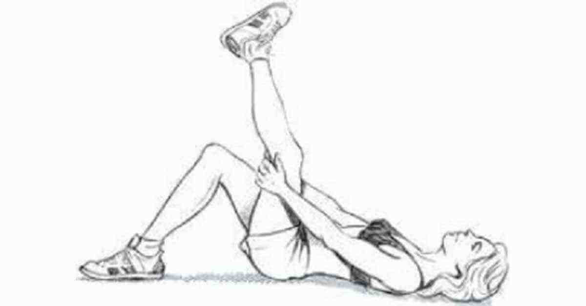 2. Con las manos, extiende suavemente y tira de la pierna izquierda hacia el pecho.