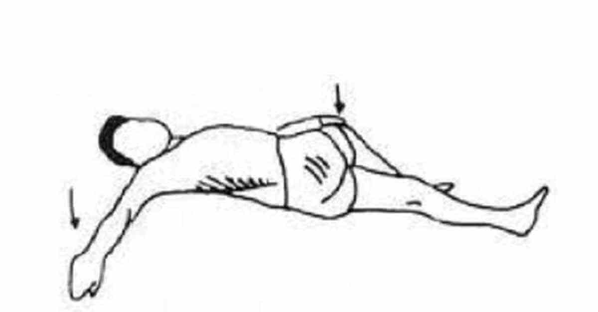 1. Pon la espalda en el suelo, acostándote. Estira el brazo derecho hacia tu lateral.