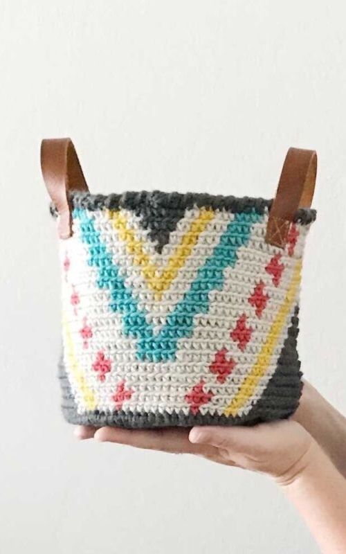 Esta cesta es tan encantadora que parece una pequeña bolsa. Las asas de cuero hacen que el acabado sea perfecto.