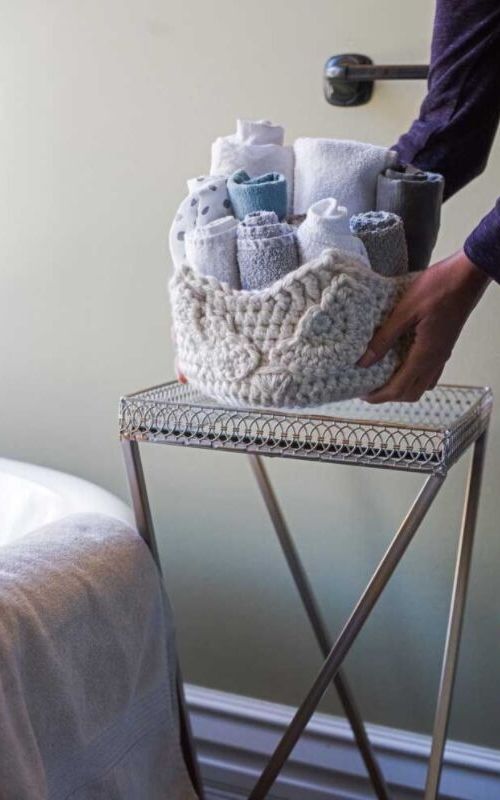 Nada es más acogedor que dar la bienvenida a tus huéspedes con una cama y toallas bien limpias, especialmente cuando se encuentran en una bonita y delicada canasta.