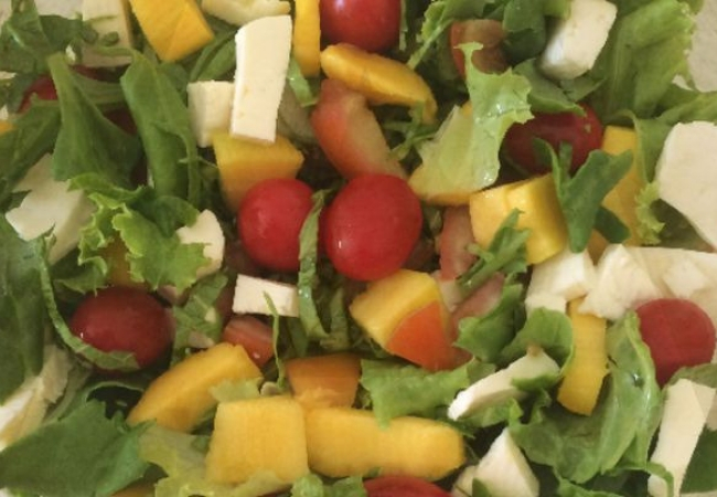 ¿Te gusta mezclar frutas en tus ensaladas? Entonces, esta receta está hecha para ti. El mango es una gran opción, ya que es jugoso, tiene una textura suave y se combina con el sabor de la rúcula, rompiendo el amargor. Esta receta también incluye tomates cherry, ricotta o mozzarella de búfalo, sésamo, mostaza, balsámico y sal.