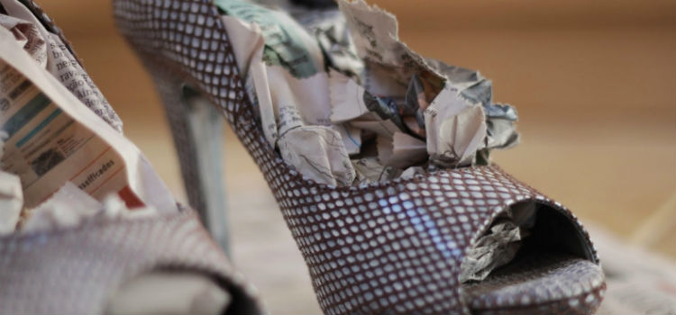 Esta técnica no debe hacerse con zapatos de ante o con calzado blanco. De hecho, es mejor para zapatos de cuero. Basta con humedezca unas cuantas hojas de diario e introducirlas en el calzado que está apretando tus pies.