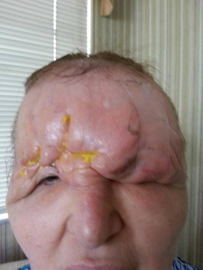 La parte superior de su rostro comenzó a hincharse aún más y a caer, incluso cubriendo sus ojos. Para ver, ella tenía que levantarse la piel. Carol sentía mucha vergüenza, no quería ver a nadie, ni incluso a su familia, durante mucho tiempo. Además, el espejo era su verdadero enemigo. La imagen solo cambió cuando su hija la convenció de buscar un especialista fuera de su ciudad.
