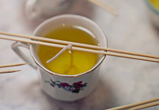 Cuando se disuelva, añade 10 gotas de aceite esencial de citronela a cada taza de cera y mezcla.