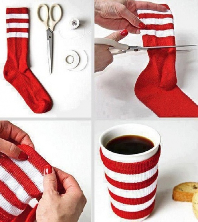 - Sus calcetines viejos pueden ser unos muy originales y útiles portavasos: