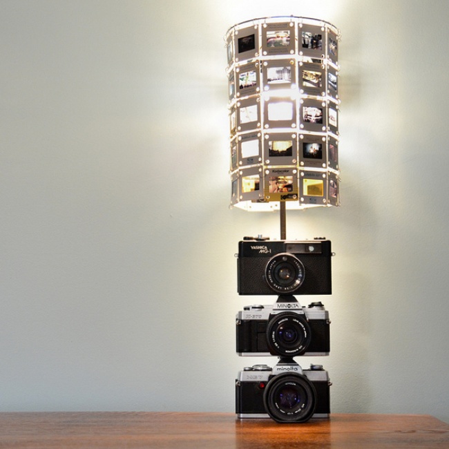 - ¿Qué le parece esta fantástica lámpara hecha con cámaras viejas?: