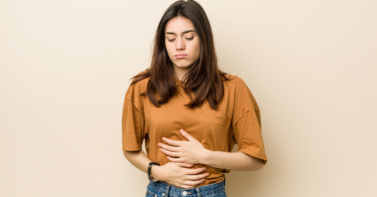 Con la mano abierta, masajea el área abdominal de derecha a izquierda, con una ligera presión, como si empujaras las heces por el camino interno del intestino hasta la salida.