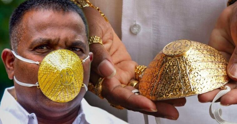 En la India, un millonario usa una mascarilla de oro mientras que su país se muere de hambre