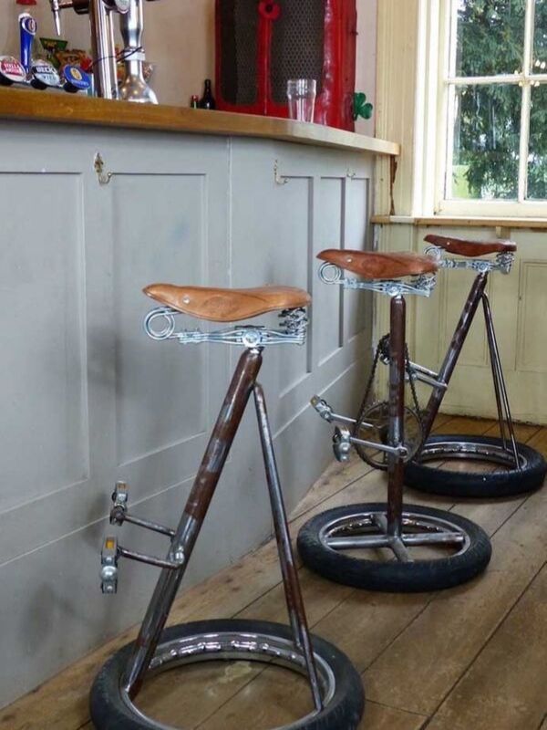Mirando de cerca los detalles, puede darte cuenta que estos hermosos asientos están hechos completamente de piezas de bicicletas antiguas. Son perfectos para los amantes de la bicicleta para colocarlos en el bar de la sala de estar.