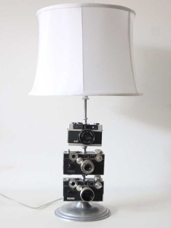 ¿Quieres darle un toque extra de diseño a tu lámpara bastante aburrida? Mira lo increíble que queda esta simple y sorprendente idea de colocar cámaras antiguas. Para aquellos que trabajan en este campo y tienen una oficina en casa, es perfecto para dejar el ambiente lleno de personalidad.
