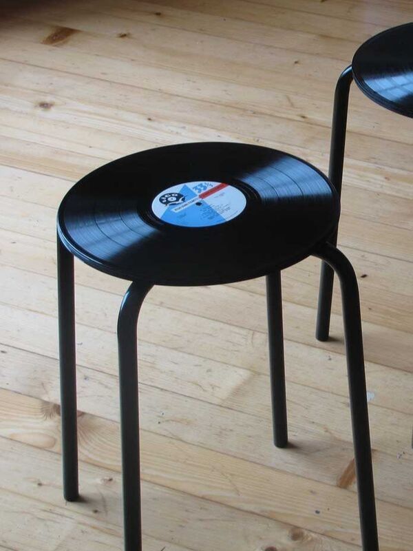 La mayoría de las personas ya no usan discos de vinilo. Entonces, en caso de que tengas algunos en casa y no quieres venderlos a los coleccionistas, puedes utilizarlos como asiento para taburetes o banquetas.