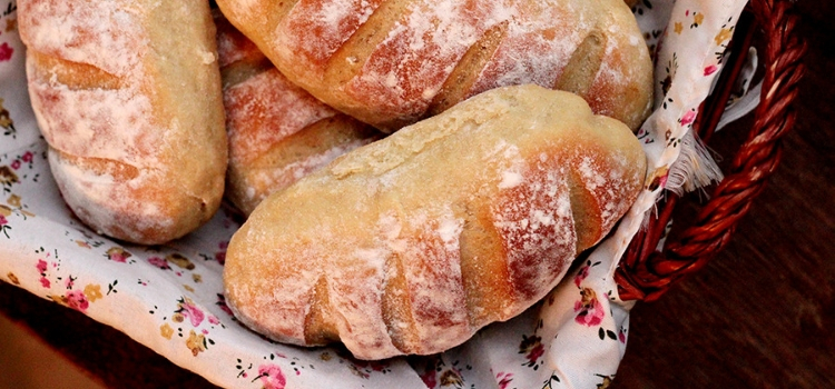 5. Por fin, pon un poco de harina en los panes y haz cortes poco profundos con un cuchillo afilado. Hornea en horno precalentado a 180ºC durante media hora hasta que el pan comience a dorarse.