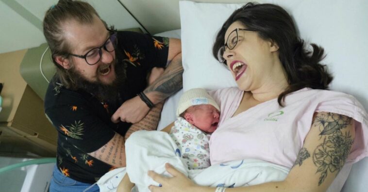 Se fue entonces para el hospital, donde el equipo médico indicó una cesárea, ya que la dilatación no fue suficiente para un parto normal, ya que solo tenía 3 centímetros. De esa manera, en a penas 2 horas, ya estaba sosteniendo a su bebé en sus brazos.