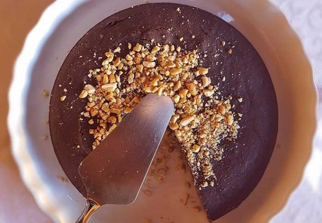 Para aquellos que están a dieta, tienen este pastel de cacahuete muy simple y con ingredientes saludables para comer cuando te entren las ganas de comer algo dulce.