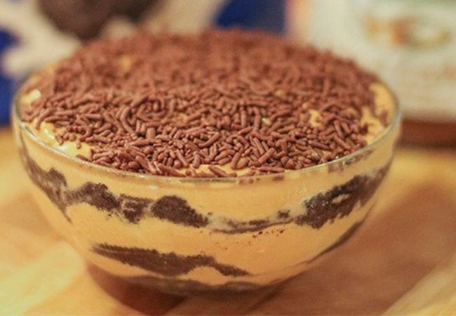 Este es un clásico que se llevó a Brasil hace siglos de la cocina alemana, como se puede imaginar por su nombre. Tiene una crema más espesa y bien azucarada que es deliciosa cuando se combina con las galletas y la cobertura de mousse de chocolate.