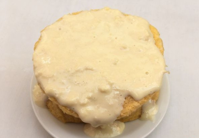 Esta es un pastel de una porción para cuando tienes pocos ingredientes, poco tiempo y muchas ganas de comer un dulce. Está hecho solo con huevo, edulcorante, leche en polvo y levadura. Tampoco lleva harina. También se hacer con una cubierta elaborada con edulcorante, agua y esencia de vainilla.