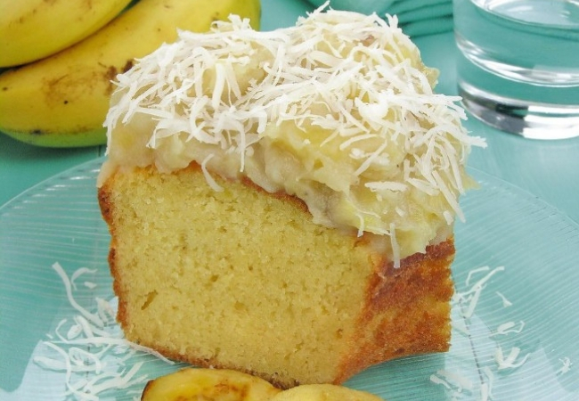 Esta masa es un poco más consistente que las versiones anteriores, precisamente por el plátano. La receta también incluye azúcar, mantequilla, trigo, levadura, leche y huevos. Para el almíbar, vas a necesitar azúcar, plátano y leche de coco.