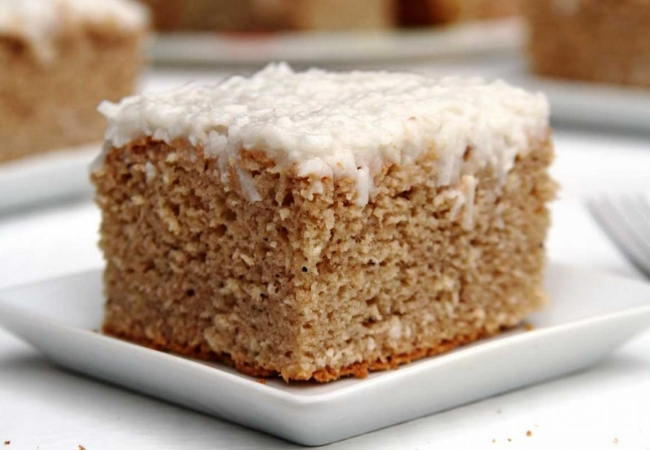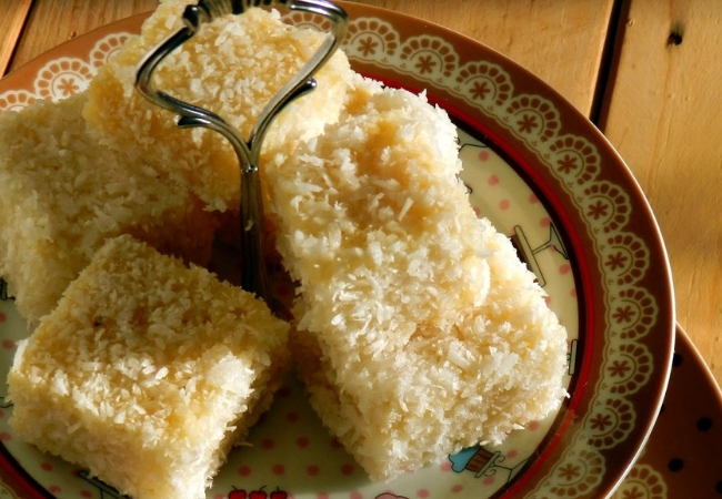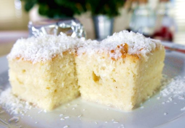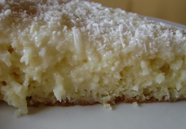 Para esta versión simple, la masa está hecha con huevos, trigo, azúcar, leche y levadura. En la parte superior hay un almíbar hecho con leche de coco, leche, azúcar y coco rallado. Este es perfecto para aquellos que solo quieren probar el sabor puro del coco.