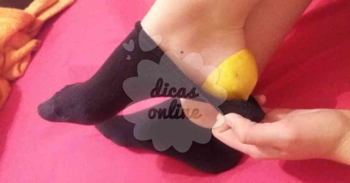 4. Cuando encuentres que la mitad del limón está bien colocada en el talón, pon la mitad en el pie para que el limón no se mueva ni se suelte.