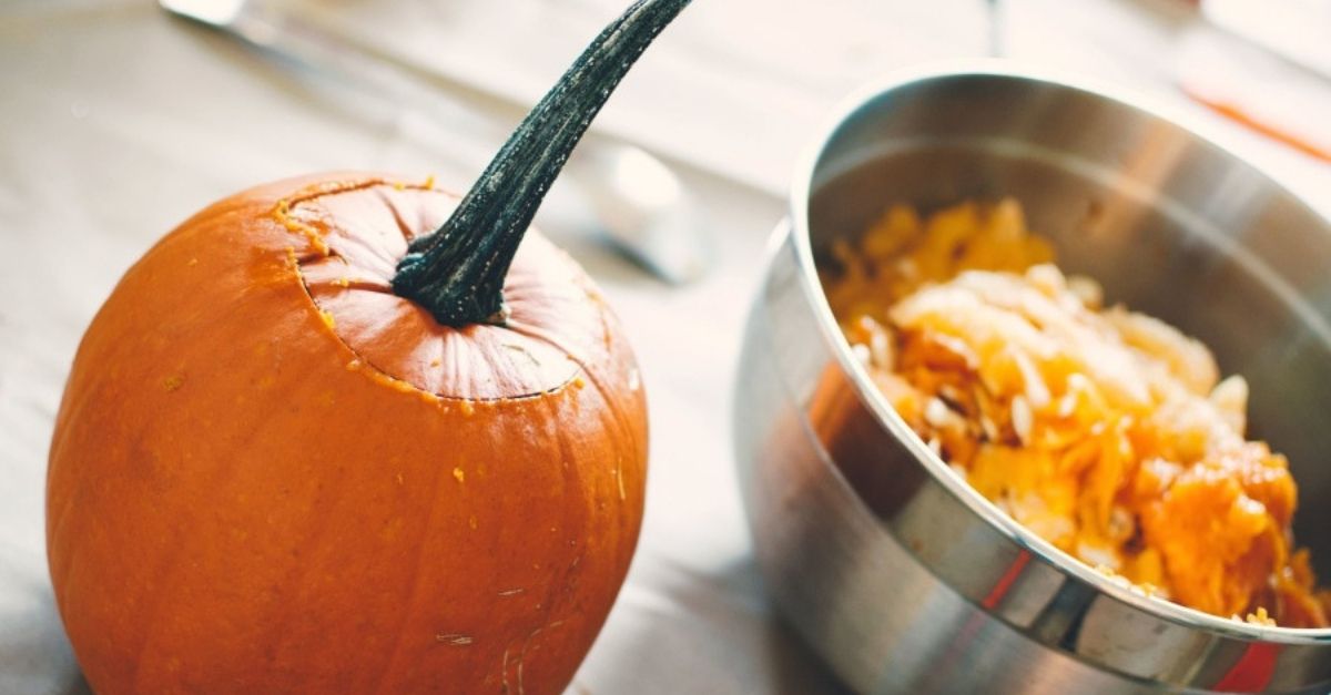 1. Abre la calabaza en la parte superior haciendo una tapa. Con una cuchara, retira las semillas y guárdelas para otro propósito (hornear y preparar bocadillos). Retira parte de la pulpa, dejándola en los bordes, y reserva.