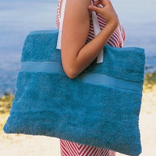 Con costuras simples en ambos lados, tu toalla de baño vieja puede convertirse en una bolsa de playa de un tamaño grande. Después, solo cose las correas y ya estará lista.