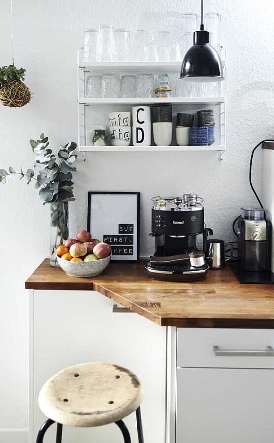 Si en tu casa el momento para el café es sagrado, vale la pena invertir en un rincón del café. Puede ser un espacio pequeño, que está oculto cuando no se usa, o puede ser un espacio decorado y con el equipamiento y la vajilla ya preparados para servir cuando lo desees. El hecho es que este rincón hace que la hora del café sea aún más deliciosa y acogedora. Mira estas ideas para inspirarte a la hora de hacerlas en casa.
