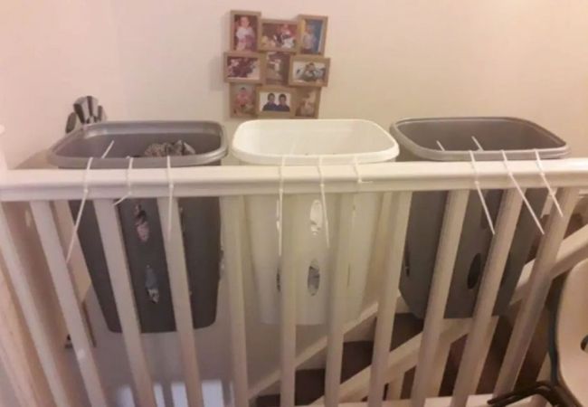 Al sacar la ropa de los cestos, los da vuelta, ya que las pinzas permiten esta flexibilidad. La rutina mejoró y todos los que vieron la publicación encontraron la idea brillante. Tash recibió muchos comentarios de personas que se encuentran en una situación similar y ya querían poner la en práctica.