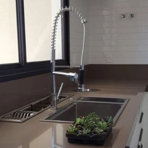 3. No hay escurridor de platos sobre el fregadero porque en este modelo los desagües están integrados